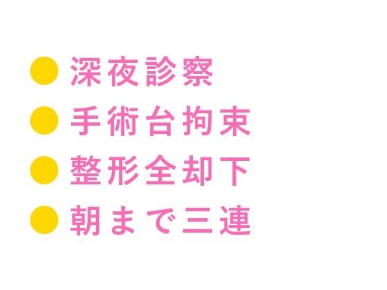 深夜23時――スタッフが全員帰った美容クリニック最上階。無影灯だけが煌々と灯るオペ室で、「二人きりのカウンセリング」が始まる。 受け・柊一(しゅういち)は、自分の顔も体もコンプレックスだらけの大学生。目を、鼻を、唇を、全部変えたくて、ネットで見つけた深夜カウンセリング枠に飛び込んだ。待っていたのは、銀縁眼鏡の冷徹な美容外科医・氷室凛一。 「この鼻梁の角…