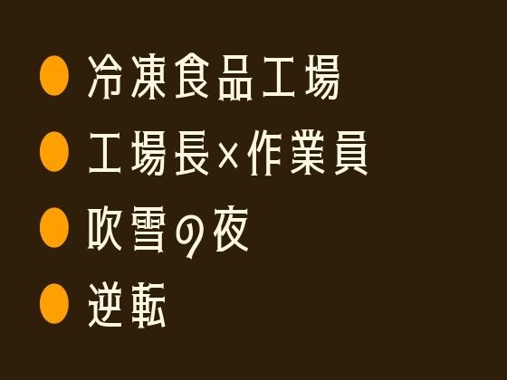 北海道・紋別。マイナス25℃の製氷工場で、夜勤の冷凍庫作業を続ける柊には、誰にも言えない秘密がある。男の身体に、ひとつだけ女の器官を持つ「カントボーイ」──極寒の冷気に晒されるたび、その場所だけが抗いようもなく疼き、熱を持つ。東京から逃げるようにこの地に来て2年。孤独な自慰だけが唯一の対処法だった。 寡黙で無表情な工場長・氷室剛、33歳。186センチの大…